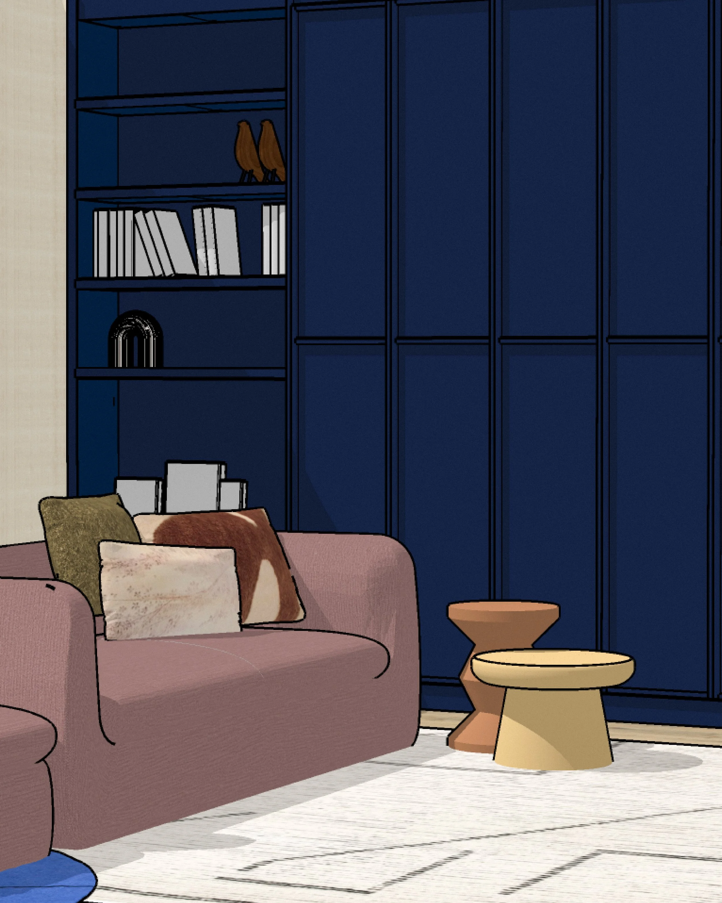 Alles komt samen in een 3D ontwerp met de definitieve keuzes voor wandbekleding, kleuren, materialen, textiel, verlichting, meubels, accessoires en maatwerk.